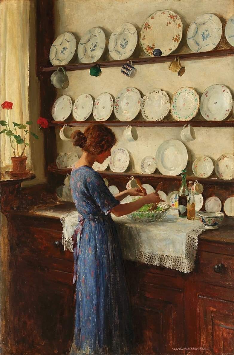 The lady at home” Henry Margetson ( 1861 – 1940 ) British Painter