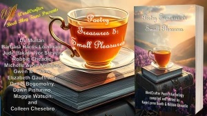 Welcome to the “Poetry Treasures 5: Simple Pleasures” Book Blog Tour Kay Castaneda, April 25, 2025April 26, 2025 WordCrafter Poetry Treasures 5: Small Pleasures Tour Banner Giveaway This tour we’re giving away digital copies of Poetry Treasures 5: Small Pleasures to three lucky winners. Follow the tour and comment at each stop, so we’ll know you were there. You’ll be entered for another chance in the giveaway at each stop. Winners are chosen through a random drawing by WordCrafter Press. We’ll be watching for your name. Welcome everyone! Today is Day 6 on the Virtual Blog Tour for Poetry Treasures 5: Small Pleasures, edited by Kaye Lynne Booth & Robbie Cheadle. I’m happy you chose to join us at Bookplaces.blog today. Reading of “Daybreak“, by DL Mullan About DL Mullan DL Mullan’s Avatar DL Mullan is much more than a lyrical and literary poet. Her elementary school taught Japanese theater and poetry, foreign languages, writing, cooking, drama, as well as drawing skills. Secondary education was an Arts Magnet High school, introducing her to the technical side of art through theater and concert choir. Everything a budding artist would need until community college filled her with a love for poetry. As a poet, she won academic awards and writing credits. Director of her own community poetry group, she presented, taught the love of poetry, as well as created her own poetic forms. During 2020, participants from around the world, including Europe and Asia, flocked to Undawnted to learn poetry from Ms. Mullan. Experience poetry in genres and styles that aren’t in the traditional English textbooks, but should be. Ms. Mullan holds several college degrees, including a Bachelor of Arts in Liberal Studies, as well as a Masters of Arts in Teaching and Learning with Technology. For more information about DL Mullan’s creative writing, digital art, poetry, music and more, visit http://www.undawnted.com/. You can catch DL’s interview with Robbie Cheadle on “Treasuring Poetry” here: https://writingtoberead.com/2024/01/17/treasuring-poetry-2024-introducing-the-poetry-of-dl-mullan-and-a-review-poetry-poetrycommunity-treasuringpoetry/ About Poetry Treasures 5: Small Pleasures Poetry Treasures 5 :Small Pleasures Book Cover Open the cover and you will discover Poetry Treasures from the guests on Robbie Cheadle’s 2024 “Treasuring Poetry” blog series on Writing to be Read. Join poets DL Mullan, Barbara Harris Leonhard, Jude Itakali, Ivor Steven, Robbie Cheadle, Michelle Ayon Navajas, Gwen M. Plano, Elizabeth Gauffreau, David Bogomolny, Dawn Pasturino, Maggie Watson, and Colleen Chesebro share their own small pleasures in poetic verse. Purchase Link https://books2read.com/PT5-SmallPleasures Tour Schedule April 21-28 – Poetry Treasures 5: Small Pleasures, by Kaye Lynne Booth, et.al. Mon. 4/21 – Opening Day- Writing to be Read – (Intro. post & Book Trailer) Tues 4/22 – Colleen Writes & Publishes – (Dawn Pisturino. Guest Post) Wed. 4/23 – Patty’s Worlds – (Michelle Navajas Guest Post) Thurs. 4/24 – Carla Loves to Read– (Ivor Stevens Reading)) Fri. 4/25 – Poetry By Mich – (Barbabra Harris Leonhard Reading) Sat. 4/26 – Book Places – (DL Mullan Reading) http://WordCrafter Poetry Treasures 5: Small Pleasures Sun. 4/27 – Writing to be Read – (Wrap up) – Undawnted (Interview with Dawn Pisturino) Feel free to go back and visit the tour stops. I’m sure the poets will be very happy! Thanks, Kay Castaneda Like this:Like Loading... Related Blog Tours Book Launch National Poetry Month Poetry Poetry Anthology #BookTours#NationalPoetryMonth#poetscommunityPoetry AnthologyWordCrafter Poetry Treasures 5: Small Pleasures